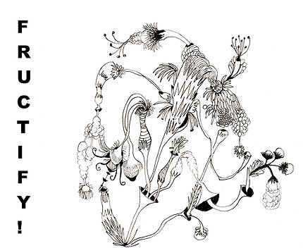 I call this ongoing series Fructify! I think of the drawings as a depiction of volunteer plant life. They are interactive and responsive forms, organic depictions with an undeniable energy. The plants are an overgrowth that is taking over the wall. As weeds they pop up and talk to each other and to me illustrate a system that is ever evolving and chaotic, a boundless growth.
